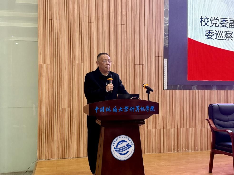 学院党委书记李红丽同志做表态发言。她从提高政治站位、全力支持配合、抓好巡察反馈问题的整改落实等三方面进行表态,并强调学院党委将以此次巡察为契机,进一步统一思想、提高认识,团结、凝聚、带领全院师生实现学院事业高质量发展,为教育强国建设地大实践贡献计科力量。