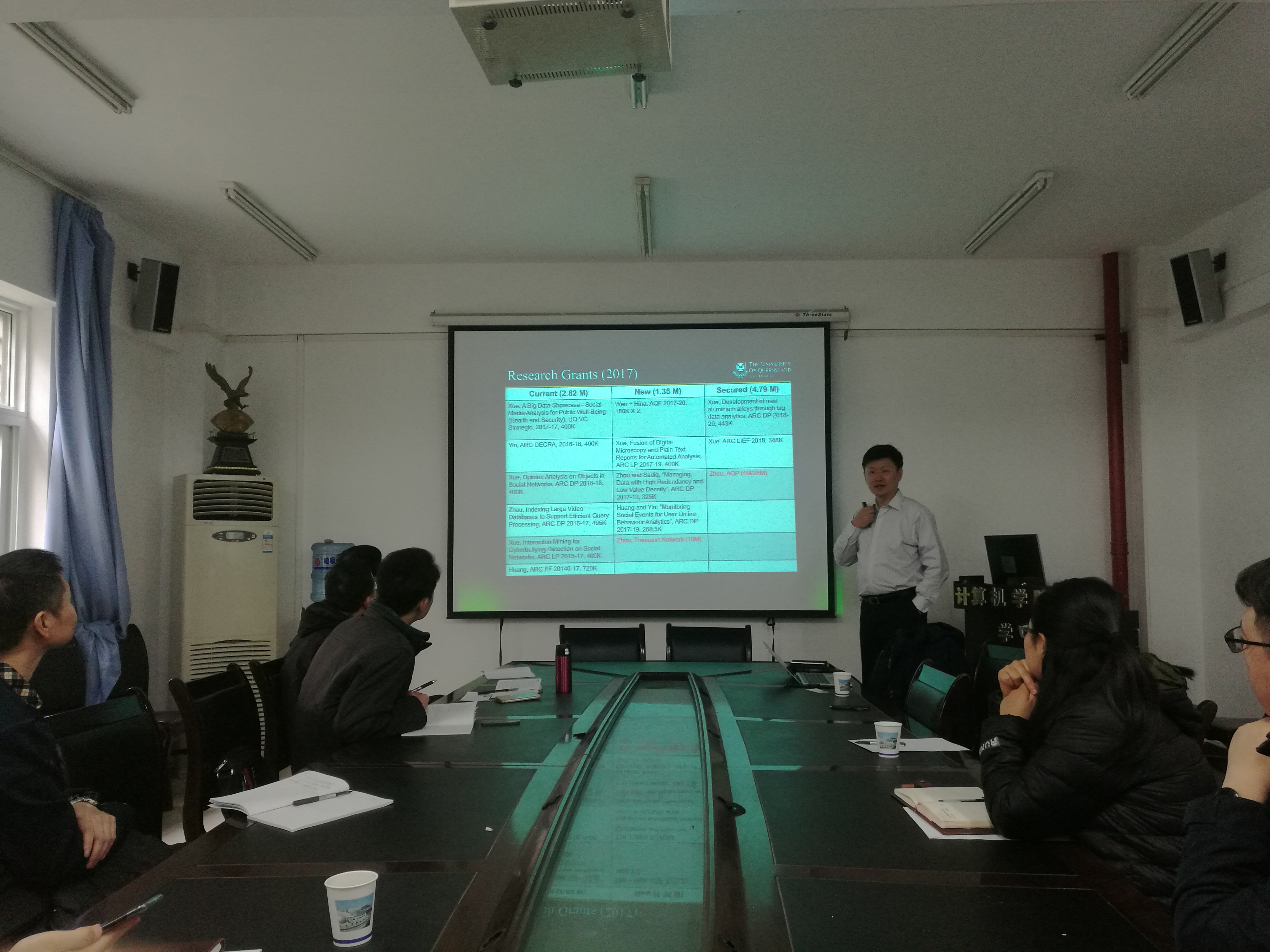 下午周晓方教授带来了一场题为《Managing the Next Generation of Data》的学术报告。周晓方,博士,昆士兰大学信息技术与电气工程学院教授、数据与知识工程研究室主任、入选国家级人才计划。周晓方教授长期从事数据库系统和信息系统研究,主要研究领域包括空间数据库,多媒体数据库,数据质量及高性能数据处理等。担任我国“863”主题项目《开放环境下海量Web数据提取集成分析和管理系统平台与应用》首席科学家。并担任过VLDB Journal, IEEE Transactions on Knowledge and Data Engineering,IEEE Transactions on Cloud Computing和World Wide Web Journal等国际一流学术期刊的编委,IEEE数据工程执行委员会主席。