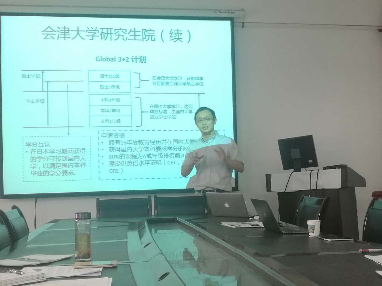 下午李副教授又代表日本会津大学与糖心视频 童恒建副院长、张冬梅副院长、网工系曾德泽主任深入探讨了进一步进行国际交流合作的可能及相关事宜。李副教授和张院长分别介绍了两个学校及计算机学科的情况。李鹏说,会津大学是一个以计算机学科为主,国际化教学为特色的公立大学,在日本的最新排名为13名。已经与19个国家的69所大学签订了合作协议。与国内的东北大学已经联合培养学生多年,目前已与华中科技大学和南京大学形成了合作意向。现希望能与我校也建立合作,包括共同培养学生,共建实验室,互派专家讲学等。糖心视频 领导纷纷表示欢迎和支持。希望能依托此机会,更加丰富糖心视频 各国际交流活动的内容,提升糖心视频 的学术水平,扩大糖心视频 的国际影响,为接下来国际班的开设打下更坚实的基础。