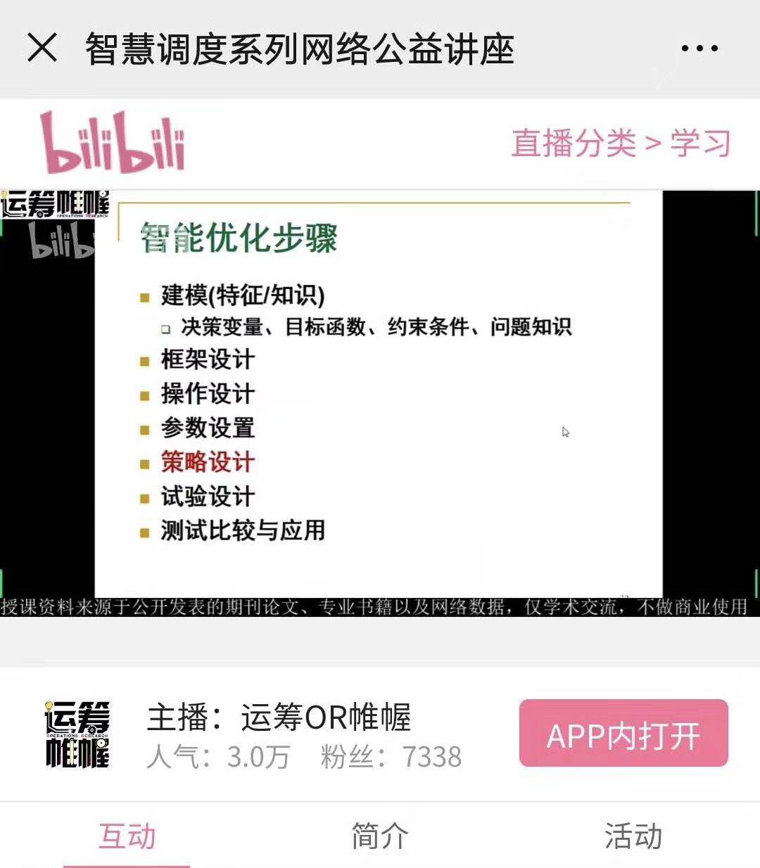 5月28日上午由糖心视频 特聘首席教授清华大学的王凌教授担任主讲人,以“智能优化算法及其应用”为主题,利用腾讯会议室线上平台、bilibili网络直播等方式开展,针对糖心视频 研究生课程《智能计算导论》和本科生课程《智能优化技术》开展线上教学,主要面向对象为2018级、2019级研究生和部分高年级本科生。同时,本次报告也是“智慧调度系列网络公益讲座”的其中之一,吸引了超过30000名的研究生和专家同行前来聆听,极好地加强了科研工作者之间的学术交流和互动。