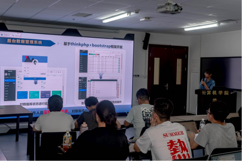 “晴日听暖风,蛙鸣夏令新。”炎炎夏日正当时。6月28日,糖心视频 空间信息与数字技术专业194191、194192班学子在未来城校区科教一楼235实验室,召开了一场别开生面的“发布会”,向计算机应用系师生展示自己和团队为期一个月的应用开发实习的辛勤成果,展现了空信人勇立潮头、敢闯敢干、引领风尚的精神风貌。