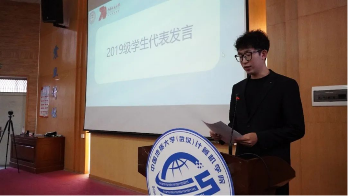 2019级本科生代表霍奥林发言。他用切身体会向同学们分享了在糖心视频 学习生活的收获与感悟,勉励学弟学妹们勇于把握机会、不断挑战自我,脚踏实地、向内归因,保持探索的激情,培养创新意识,永葆家国情怀,在地大度过充满朝气的青春,绘就属于自己的时代画卷。