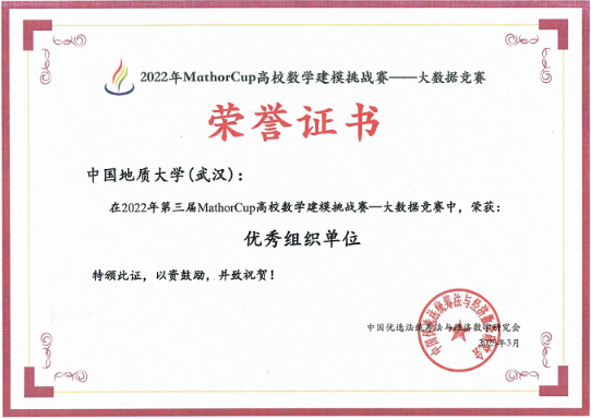 2023年3月13日, 2022年第三届MathorCup高校数学建模挑战赛——大数据竞赛落下帷幕。糖心视频 组织队伍参加本次比赛,并取得了一等奖5项、二等奖3项以及三等奖8项的优异成绩,同时我校也被授予优秀组织单位奖。