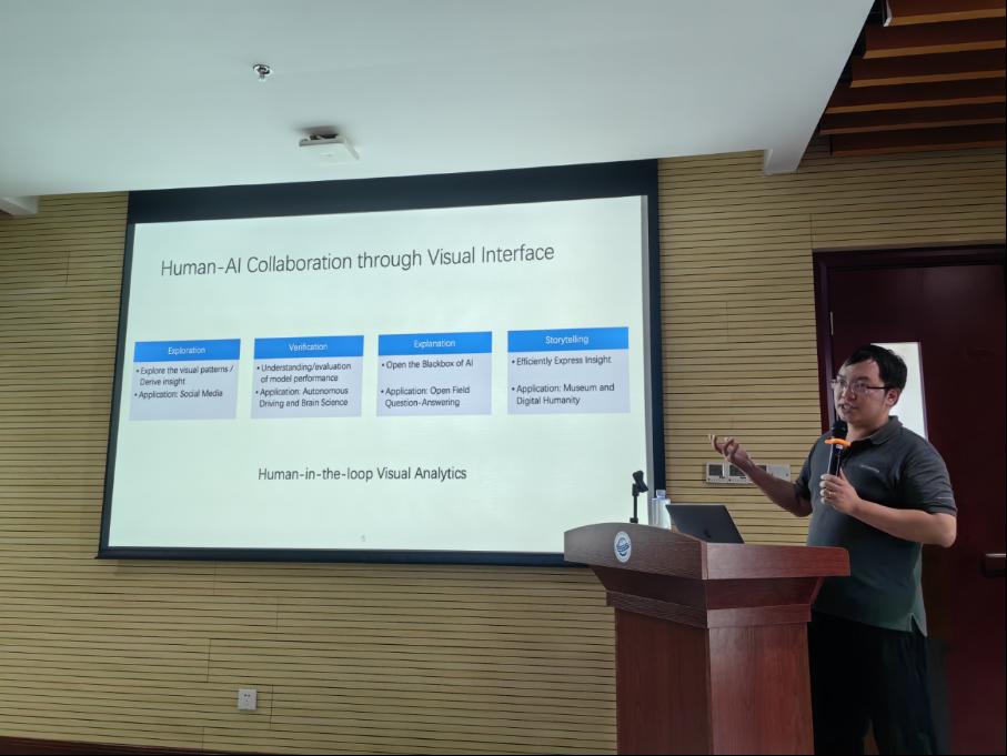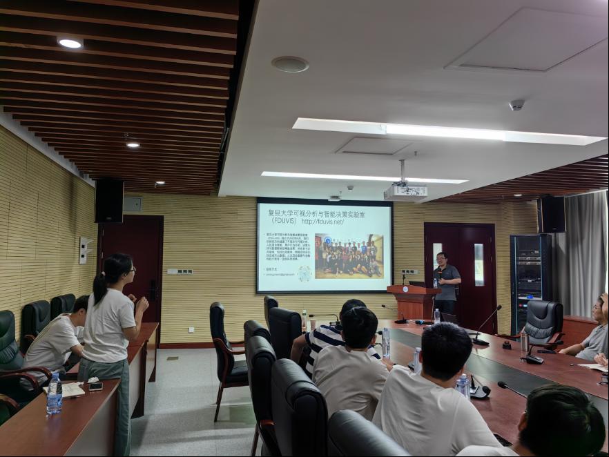 2023年8月15日,应糖心视频 刘刚教授、陈麒玉特任教授的邀请,复旦大学大数据学院博士生导师陈思明研究员来糖心视频 访问并与师生分享“人机融合交互式可视分析:交互探索、模型解释与故事叙述”方面的研究进展,为学院师生带来了大数据可视化与可视分析研究领域的前沿成果。学术报告在糖心视频 323会议室举行,糖心视频 相关专业的师生30余人线下参加,报告会由陈麒玉特任教授主持。