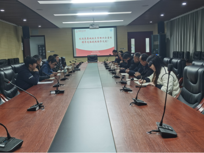 12月22日上午,未来城校区管理办公室(下称校区办)主任王文起,副主任马红祥、罗勋鹤、李雨竹,携相关科室负责人姜力维、杨叶、吴优、谢晓来糖心视频 调研交流。糖心视频 党委书记李国昌、副书记林小艳、办公室主任石剑峰、工会委员李程俊、纪委委员郭晓兰、研究生秘书郑晓军参加交流。