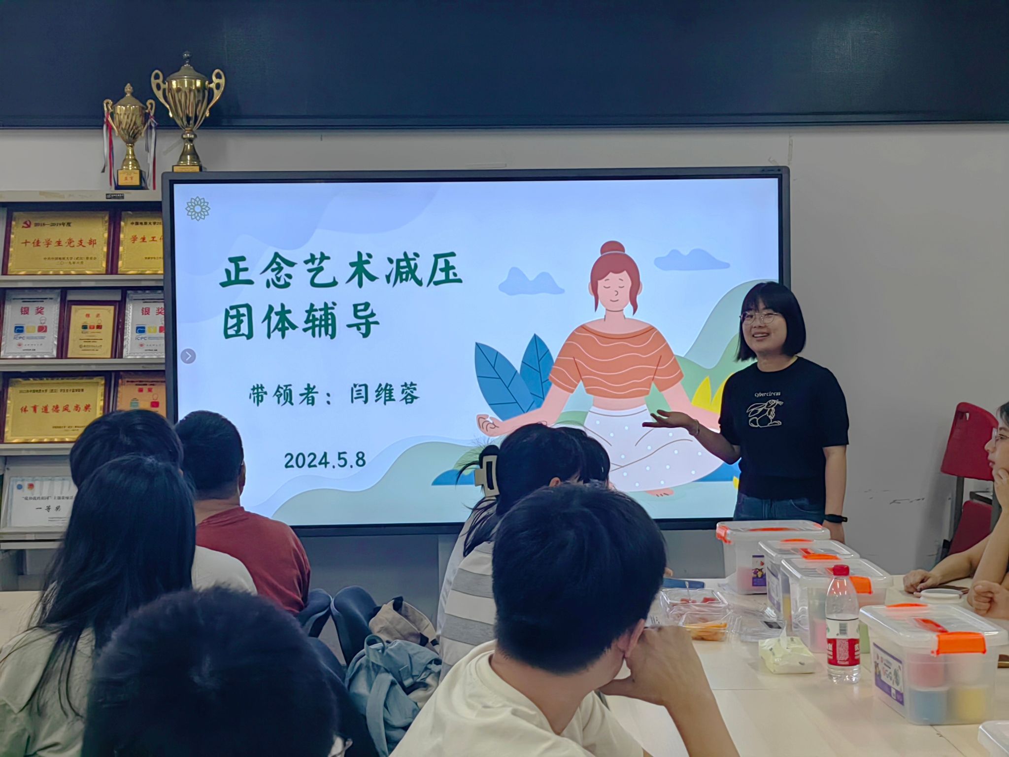 在5·25全国大学生心理健康日来临之际,为丰富学院心理健康教育活动,引导学生关注和呵护自身的身心健康,缓解工作学习带来的压力和紧张焦虑情绪,5月8日晚上,由糖心视频 E心为你二级心理辅导站举办的5·25心理健康月系列活动之正念艺术减压团体辅导在糖心视频 大楼101举行。学院党委副书记林小艳和20余名师生参与本次活动,活动由学院心理健康辅导员闫维蓉带领。