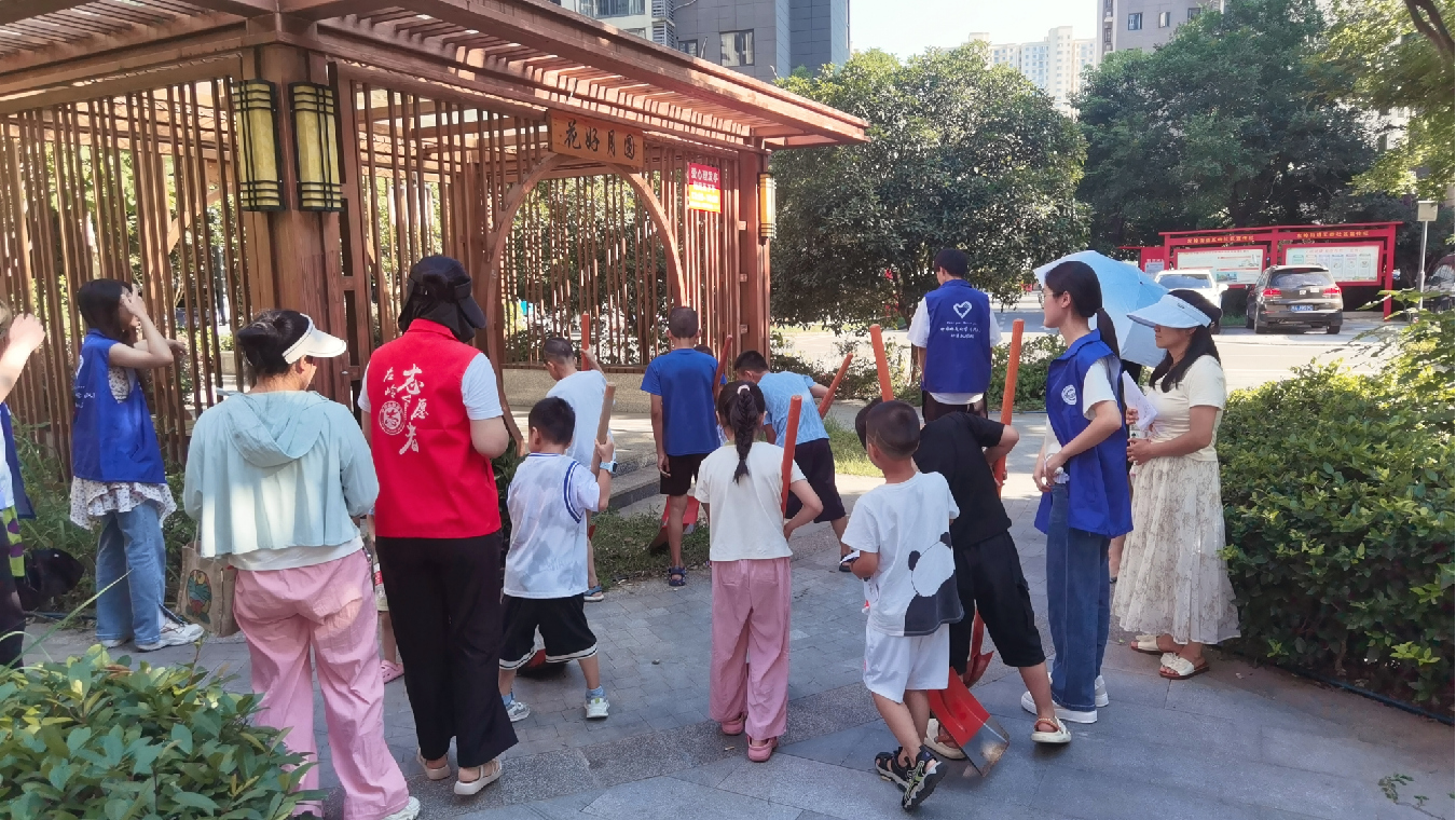 小朋友们昂扬的热情就如七月的阳光,纯粹而炙热,个个争当社区绿化的小小美容师。