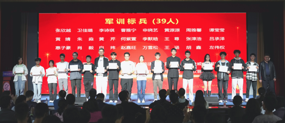 胡成玉为军训标兵颁发荣誉证书。在14天的军训期间,军训标兵们表现优异,他们在烈日下坚持不懈,严格要求自己,展现了计科学子的坚韧品质与集体荣誉感。他们的出色表现不仅为个人赢得了荣誉,也为学院军训工作增光添彩。