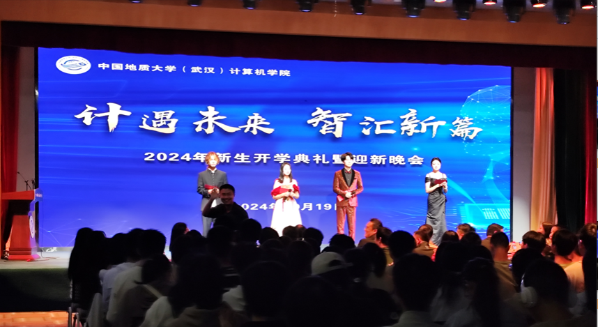 秋华为序梦正扬,拼搏为舵恰逢时。10月19日,学院2024级本科生开学典礼暨迎新晚会于南望山校区东区珠宝学院四楼报告厅举行。学院党委书记李国昌、院长张洪艳、副院长胡成玉、党委副书记林小艳、工会主席梁庆中、办公室主任卢笙、团委书记王太茂,校友代表王平,2024级班主任,全体辅导员与新生共同开启“计遇未来,智汇新篇”的崭新征程。张殷恺、魏宇晗、盛梁、马艺萱四位同学主持会议。