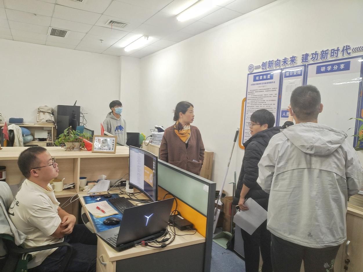 为深入推进研学空间建设,增强研究生安全教育管理,学院于2024年10月24日下午,开展第65期“我的实验室我呵护”实验室走访活动,糖心视频 副院长胡成玉、党委副书记林小艳、研究生辅导员李欢欢和研究生秘书黄果走访全院46间研究生实验室,了解同学们的科研进展和学习状态,巡查实验室安全卫生和日常管理情况。