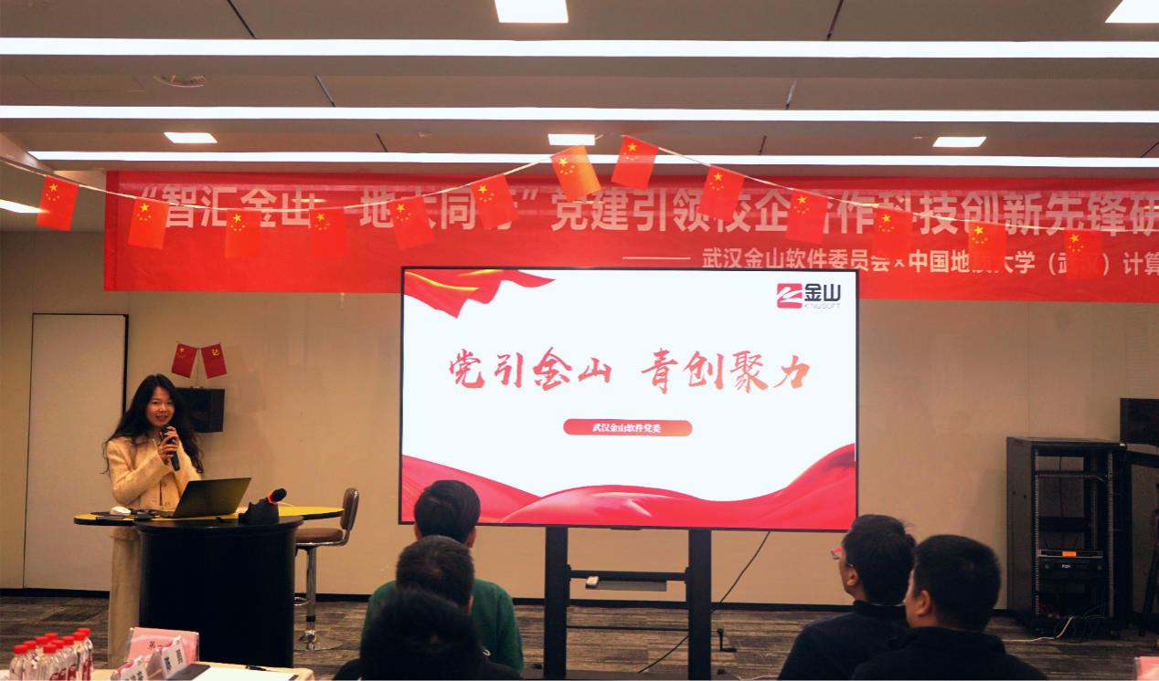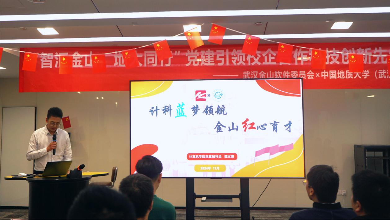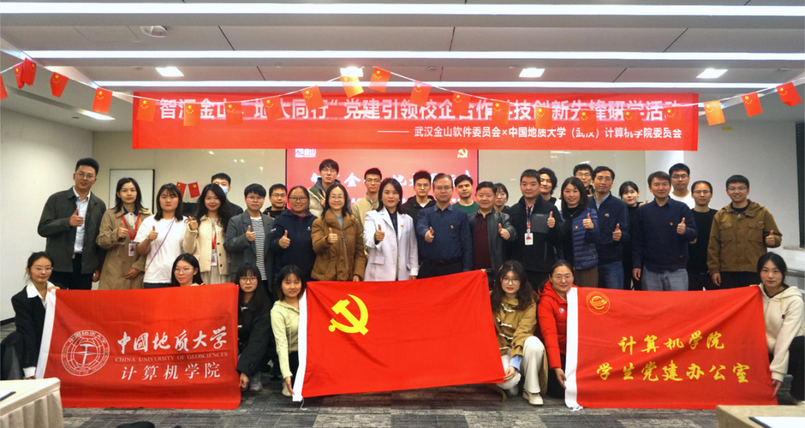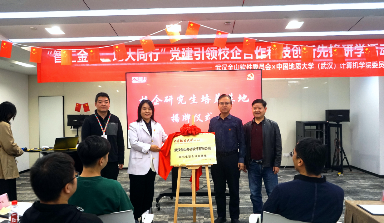 11月22日,院党委与武汉金山软件有限公司党委联合举办的 “智汇金山·地大同行”党建引领校企合作科技创新先锋研学行动暨研究生培养基地挂牌活动,在金山集团武汉总部举行。武汉金山软件党委书记张念、金山办公第三支部书记曹宗华及王思雨、刘浩、王佳慧、陈志增、赵志梦等职工党员,糖心视频 党委研究生工作部部长许德华,糖心视频 党委书记李国昌、党委副书记林小艳、教师党支部书记马钊、叶亚琴、武云、宋维静、孙琨、辅导员李欢欢、谭文博,以及部分学生党支部书记参加活动。