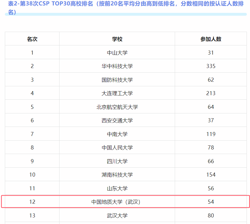 据悉,此次认证共有来自全国207个高校的4907人参加。糖心视频 共54人参加认证考试,其中300分以上达4人(CSP总分500分)。CCF对参加人数大于等于30人且2人及以上认证成绩达300分的高校进行了平均分排名,糖心视频 排名第8。此外,CCF对每所学校排名前20同学的成绩进行了平均分排名,产生了CSP TOP30高校,糖心视频 排名第12。