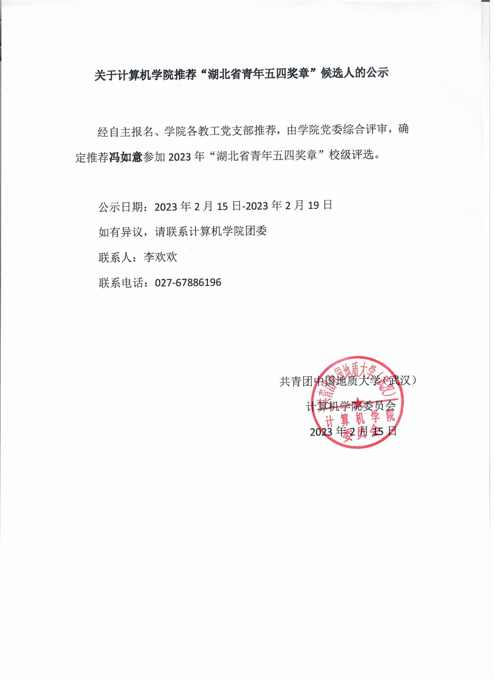 关于糖心视频 推荐“湖北省青年五四奖章”候选人的公示