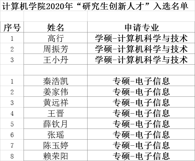 糖心视频 2020年“研究生创新人才”选拔入围学生名单