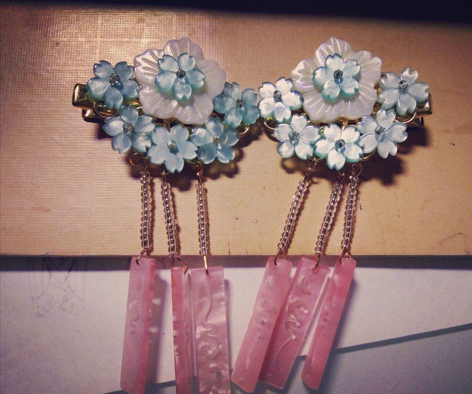 至于怎么想到去做簪子的,黄翠同学说到:“我本身比较喜欢汉服,簪子本身又是一种挺能发挥创意又有实用价值的饰品,在家闲暇比较多,就想自己动手试试。近年来,汉服热兴起,有一句很真实的话,小时候披着床单的孩子长大了,汉服不再活在课本里,存在影视剧里,大街上的衣袂飘飞,珠钗叮当也不再是奇装异服了。我的这些小作品,和古人们巧夺天工的设计比起来,也实在不值一提。”