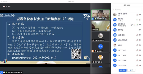 (通讯员:孙彦钦)为增进家长对学院工作的了解,进一步促进家校联动机制在育人体系中发挥有效作用,9月4日晚,糖心视频 通过腾讯会议的形式召开了2021级新生家长会。院党委书记李国昌,党委副书记傅苑,副院长陈云亮,院团委书记李欢欢,学工组全体成员以及300余名新生家长参加此次会议,李欢欢担任主持。