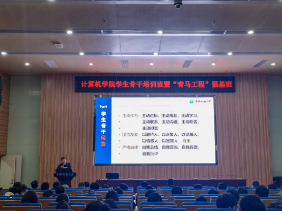李国昌讲到,学生骨干要向党的干部标准看齐,做到品学兼优、以品为先。“作为一名学生骨干,为的就是人品信得过,能力信得过,作风信得过,师生信得过,总结起来就是一个词——‘靠谱‘”。他列举自己和身边的例子,表示学生骨干最终大多能成大才,担大任,以此勉励同学们服务他人、成就他人,担起更大责任,绽放更大光芒。