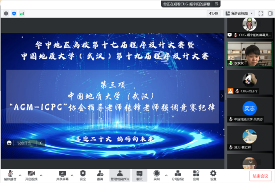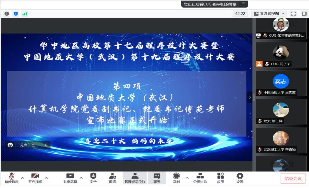 活动伊始,李国昌致开场辞。他代表地大糖心视频 向所有参赛选手表示欢迎,介绍了学院ACM系列活动开展情况和“ACM-ICPC”协会的发展历程,2021年协会突破历史,获得ACM-ICPC亚洲区域赛金奖。希望同学们在本次比赛中取得佳绩,在未来学习中立科技兴国之志,谋专业报国之实,争做时代先锋,为实现中华民族伟大复兴贡献青春力量。