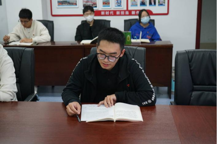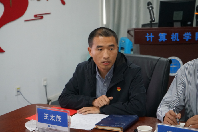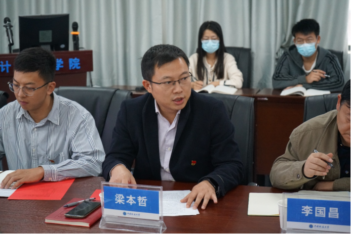 学生党支部书记发表学习习近平总书记给山东省地矿局第六地质大队重要回信精神的心得体会。计科第一党支部书记、湖北省第八期“青年马克思主义者培养工程”学员柴文岳,计科第二党支部书记王子震,2021级研究生专硕第一党支部书记郭兴先后发言。