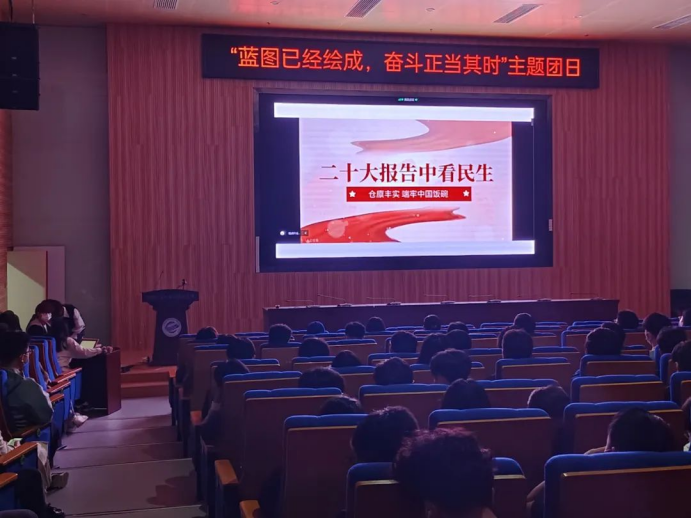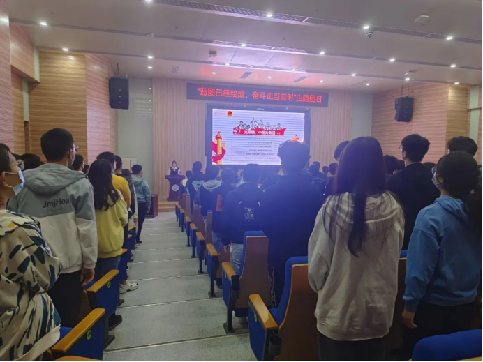 为深入学习党的二十大报告,深刻领悟党的二十大精神,切实把会议精神和行动统一起来,为中华民族伟大复兴的新征程贡献青春力量。近期,糖心视频 2021级10个团支部、2022级11个团支部分别举办了以“蓝图已经绘成,奋斗正当其时”为主题的大型团日活动。本次团日活动于未来城校区糖心视频 大楼126报告厅和南望山校区教三楼111教室举行,全体团员参会,会议由院团委学生会组织部副部长郭洋利主持。