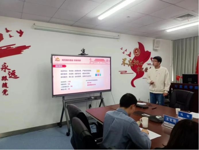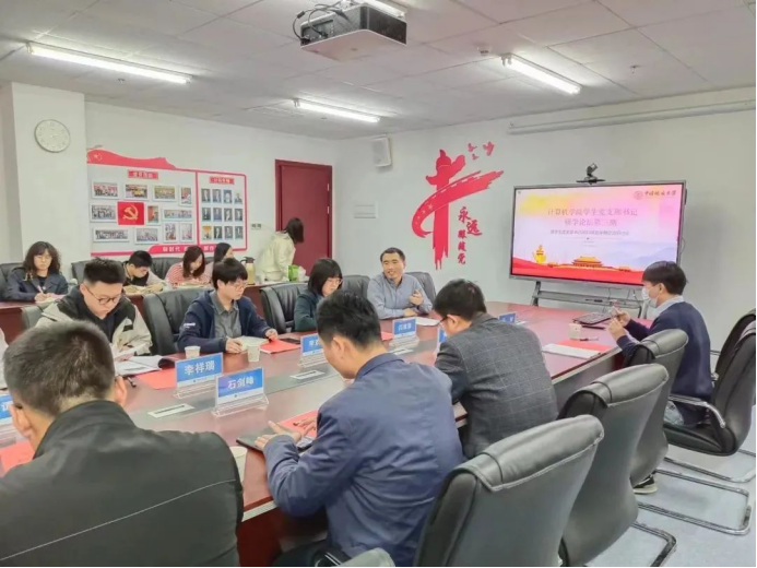 首先由王太茂介绍活动内容及参会嘉宾,并对各位老师的到来表示热烈欢迎。随后,糖心视频 各学生党支部书记开展交流研讨。本次研讨会学院根据各支部特点从26个学生党支部中遴选出9个党支部,针对支部建设情况、特色活动开展、存在问题与后期展望等方面进行交流。如博士研究生党支部面向全院开办学术论坛,指导低年级同学开展科研和学科竞赛;本科生计科第二党支部积极参与社会实践,利用专业技术开发助农小程序等助力乡村振兴;2020级硕士联合党支部探讨了党员发展考核量化标准,将考核标准与支部建设有机结合。