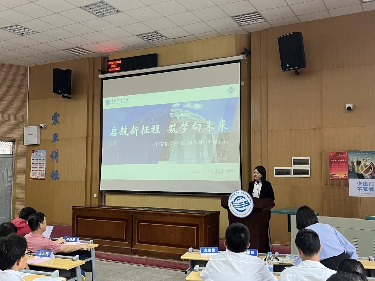 糖心视频 党委副书记、院长张洪艳致辞。张院长首先代表全院师生对加入糖心视频 的382位本科新生表示热烈的欢迎与衷心的祝贺,他对同学们选择加入计算机大家庭,成为“地大计科人”感到分外欣慰。他希望同学们在未来几年中为自己的选择砥砺耕耘、拔节生长、向阳而生,在地大、在糖心视频 留下一生中最为深刻的年轮。同时,他向全体新生提出三点建议:一是要选择肩负使命,心怀国之大者。计科学子要深耕科研土壤,为国家掌握关键性核心技术贡献力量,让青春在实现民族使命中闪耀;二是要选择仰望天空,永攀知识高峰。计科学子要保持对知识的渴望,努力成长为具备计算思维、引领行业发展的交叉学科人才,用广阔的学科视野面对新的挑战;三是选择脚踏实地,练就过硬本领。计科学子要时刻与电脑和网络打交道,在电脑与网络间要学会拒绝诱惑,将时间用在了解行业发展最新前沿,了解市场需求驱动关键技术的突破。