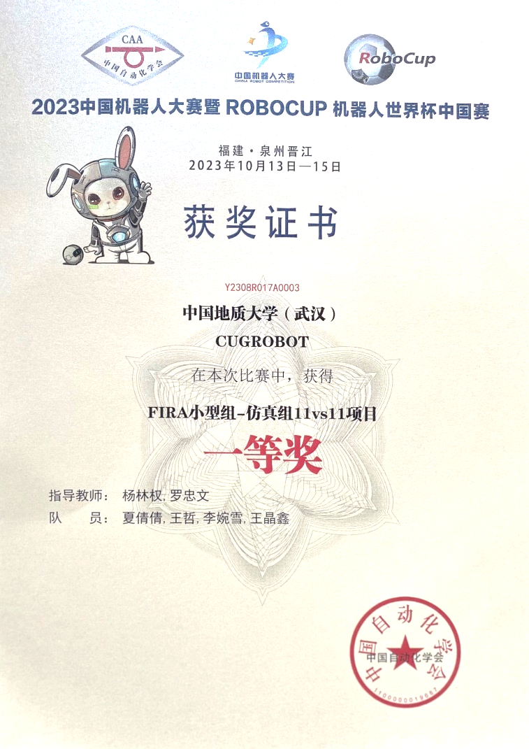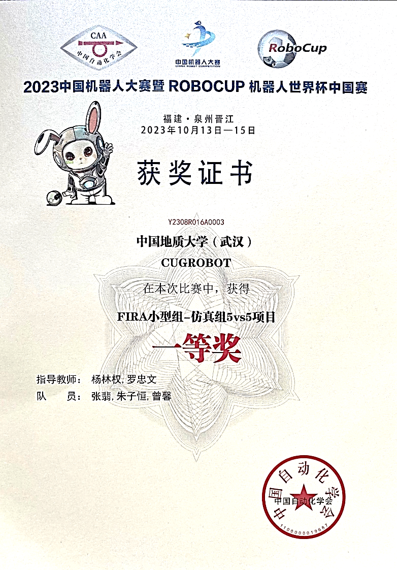 10月13至15日,2023年“中国机器人大赛暨RoboCup机器人世界杯中国赛”在福建晋江国际会展中心落下帷幕。我校糖心视频 杨林权副教授和罗忠文教授指导的学生团队参赛。经过激烈的比赛,最终学生团队勇夺FIRA仿真组5vs5项目第3名,国赛一等奖和仿真组11vs11项目的第3名,国赛一等奖。