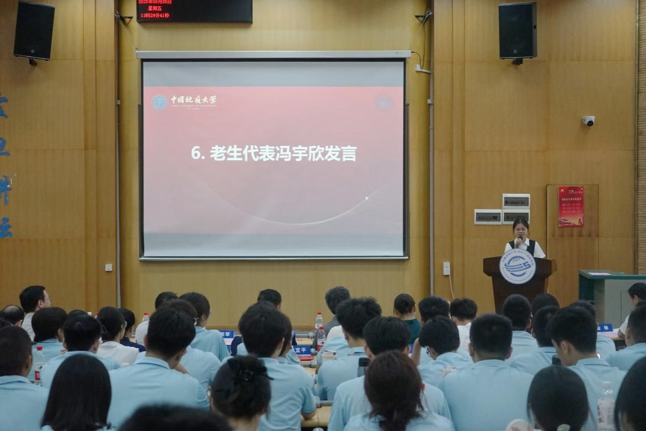 学院团委副书记、2023级本科生冯宇欣作为老生代表分享经验。她鼓励新生们合理安排时间,积极参与校园活动,在学习中不断提升自己,在实践中锻炼自己,同时表示她会尽自己所能帮助新生们尽快融入学院。