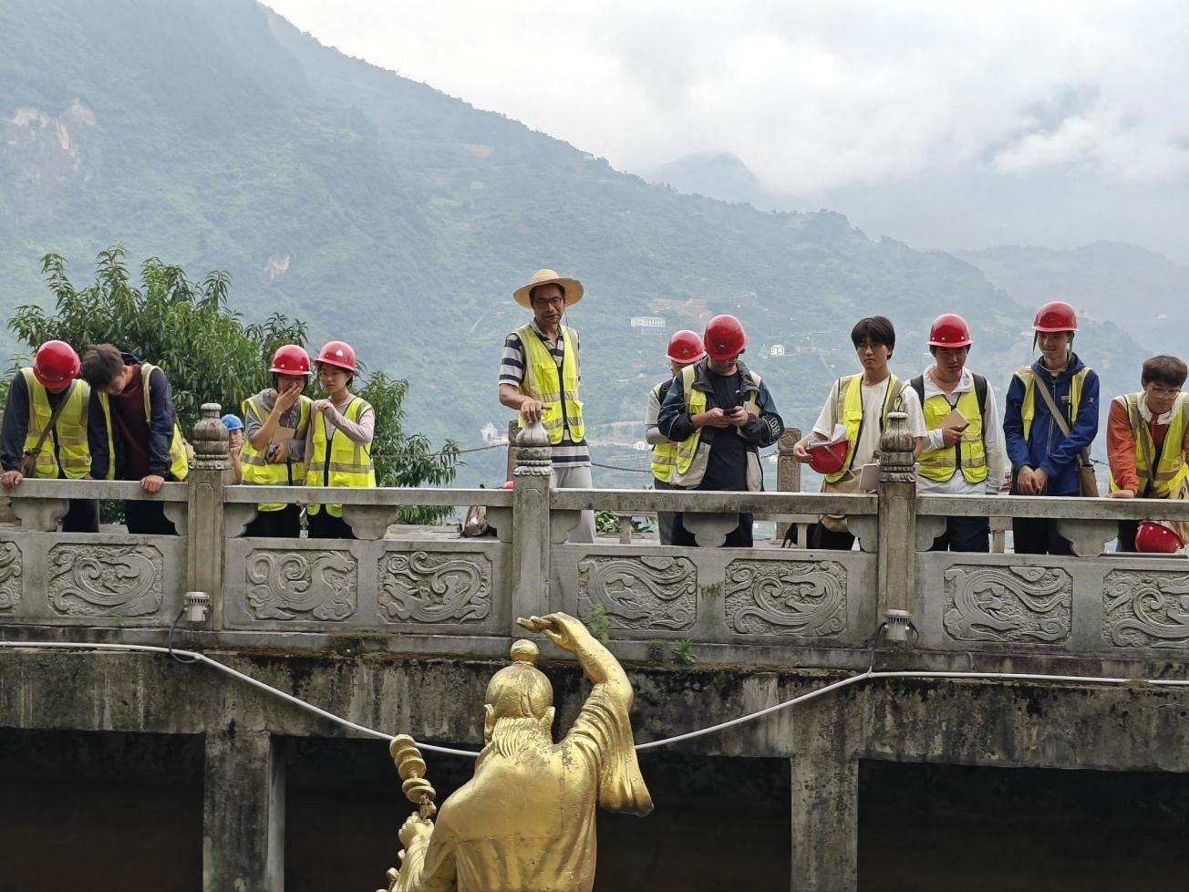 9 月 10 日,我们前往链子崖路线,探索地质灾害的形成奥秘。车子靠近链子崖时,远处山体上的裂痕隐约可见,一股庄严而肃穆的氛围扑面而来 —— 这里是大自然给人类的“地质警示碑”。在新滩滑坡遗址,何珍文老师指着裸露的山体告诉我们:“新滩滑坡是典型的岩质滑坡,由于岩层倾角较大,加上雨水渗透、构造活动等因素,导致山体失稳下滑。”