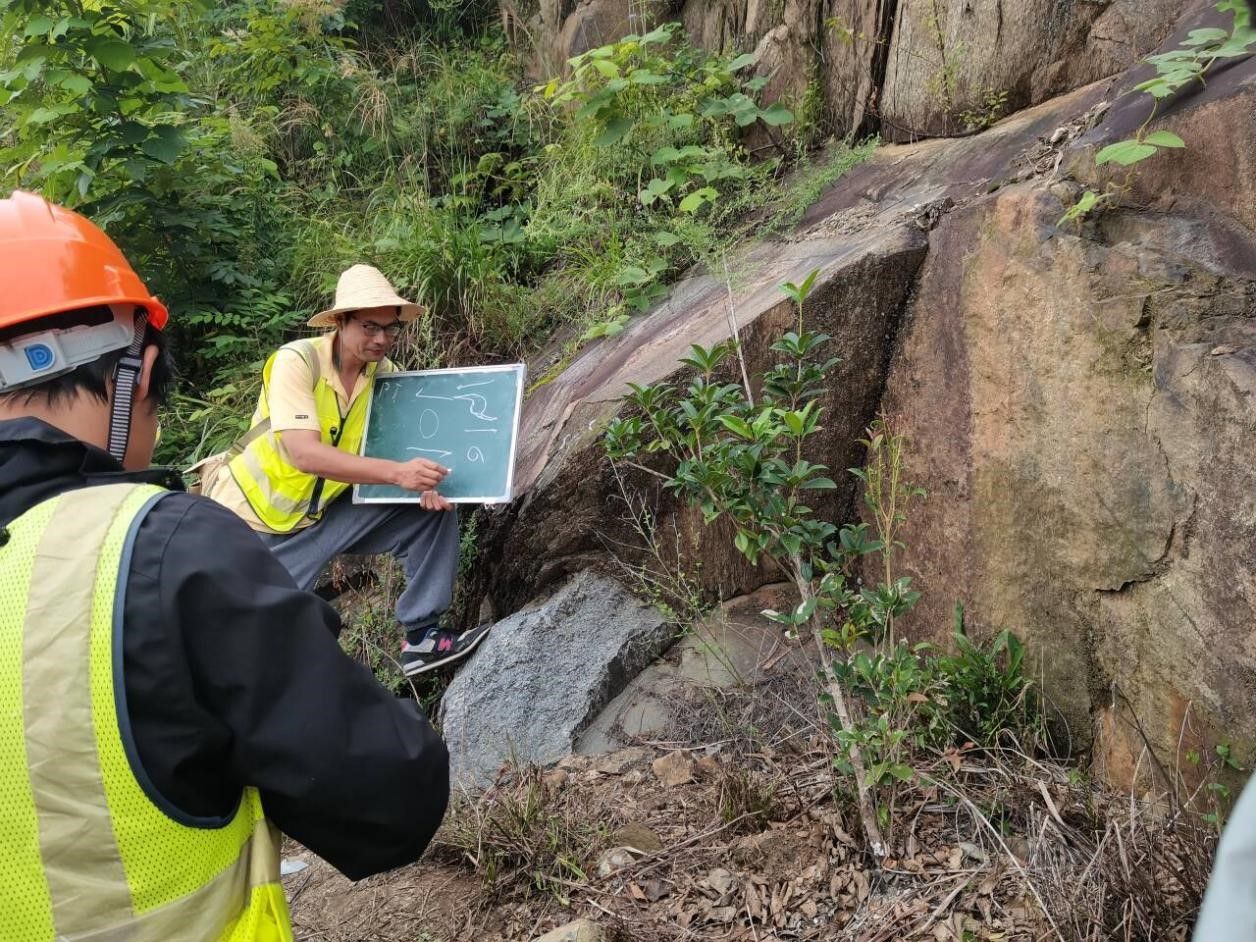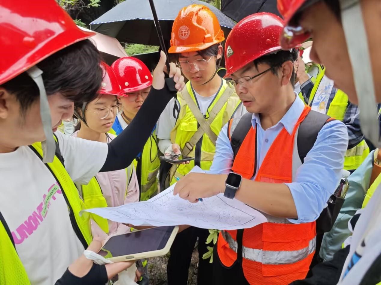 我们分组行动,有人手持地形图,在雨中仔细辨认地形;有人使用罗盘测量岩层产状,雨水打湿了野簿,我们便用塑料袋小心包裹;有人采集岩样,即使手指被雨水冻得发麻,也依然认真记录岩样信息。大家相互搀扶,相互提醒,没有人抱怨,没有人退缩。当我们成功在地形图上定出多个观测点,完成地质数据采集时,雨中的山野仿佛也为我们送上了无声的喝彩。