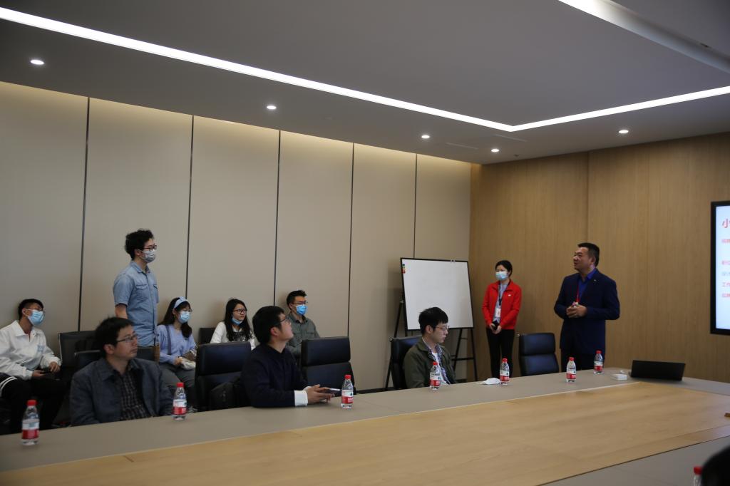 师生一行乘坐大巴前往小米科技(武汉)有限公司,受到人力资源总监肖前地热情接待。肖前首先带领大家来到小米LOT智能展厅,展示小米公司最前沿的科技。同学们体验了小米研发的目前湖北省仅一台的透明电视、尚未发售的小米折叠屏手机等最新产品,并在展厅大屏观看了小米集团应届生培养“YOU计划”的宣传视频。