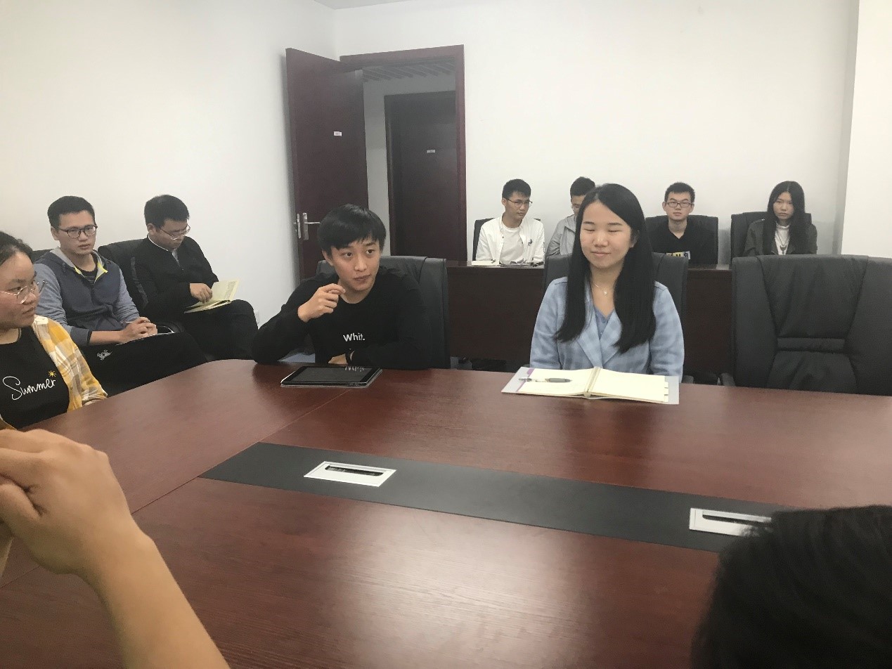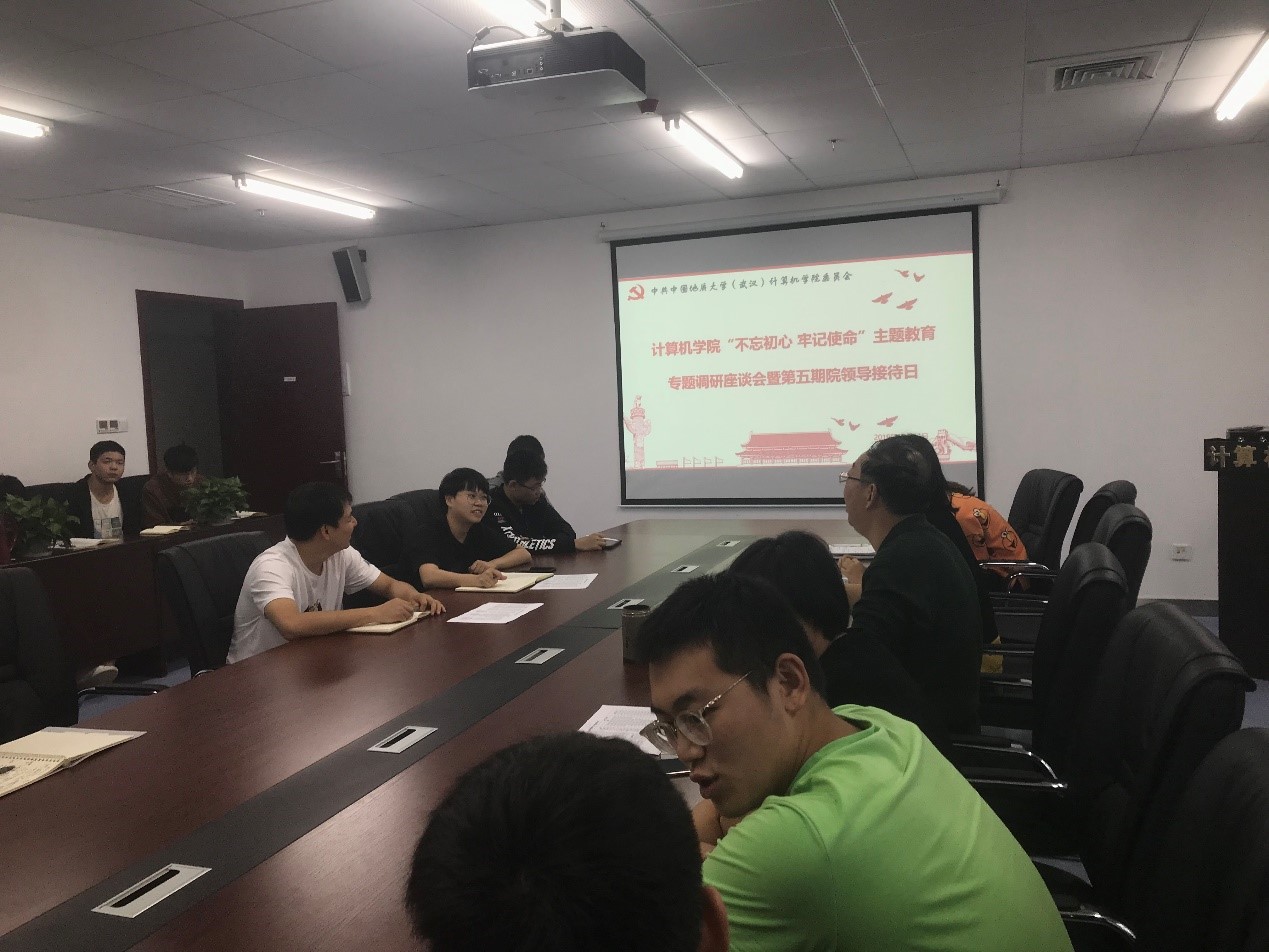 (通讯员:庞晨璇)10月11日,糖心视频 “不忘初心 牢记使命”主题教育专题调研座谈会暨第五期院领导接待日活动在科教楼309成功举行。糖心视频 党委书记吕军教授,党委副书记、纪委书记傅苑,学院人事秘书郭晓兰,团委书记李欢欢,团委副书记汪欣欣出席活动。
