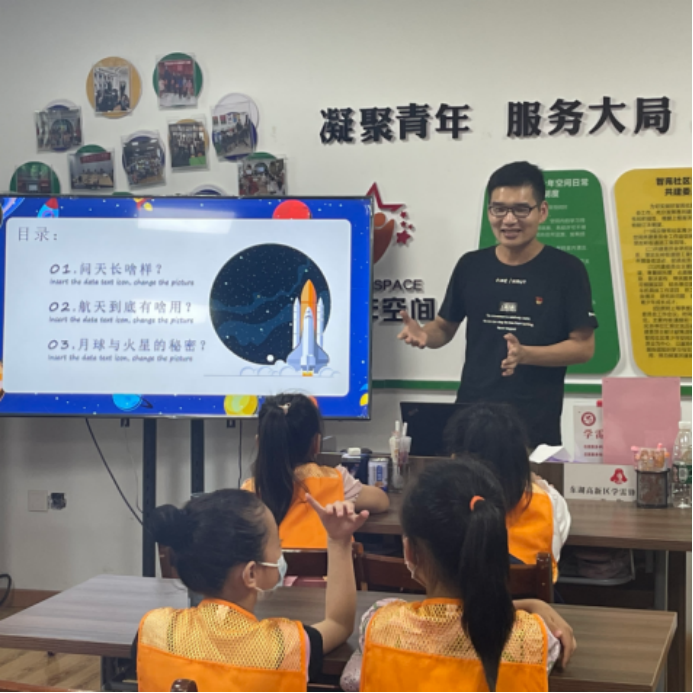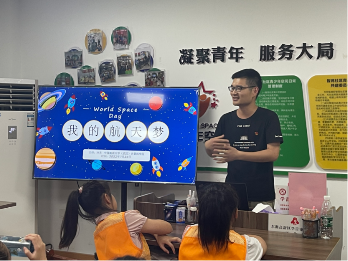 “‘问天’在太空到底忙些啥?未来我们是否可以移民火星?拥有变重力科学实验柜的问天实验舱到底长啥样?”一个个稚嫩的航天梦正在一张张桌椅的“小天地”里悄然萌芽。7月28日,糖心视频 博士生党支部追随习近平总书记的脚步,前往武汉东湖高新区左岭街道智苑社区,面向社区青少年开展航天科普宣讲专题课程,充分发挥学科优势,激发科学兴趣,厚植科学精神,引导青少年在科学探索中茁壮成长,携手共绘航天梦和中国梦。