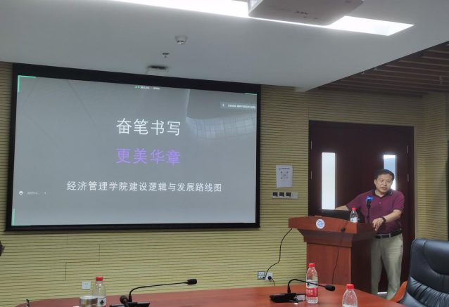 22日上午,经济管理学院党委书记杨昌锐展开第二讲:“奋笔书写更美华章——经济管理学院建设逻辑和发展路线图”“忠诚、干净、担当铸魂经管党建,问题、对策、卓越领航经管发展”。