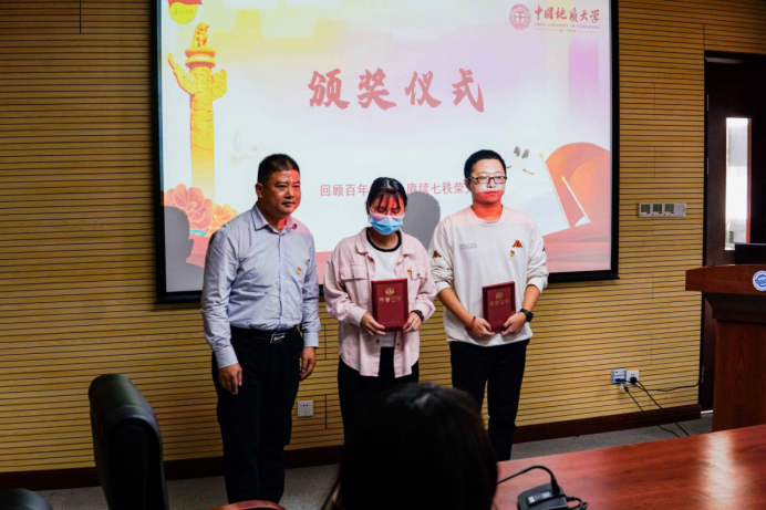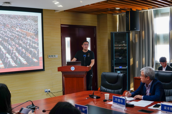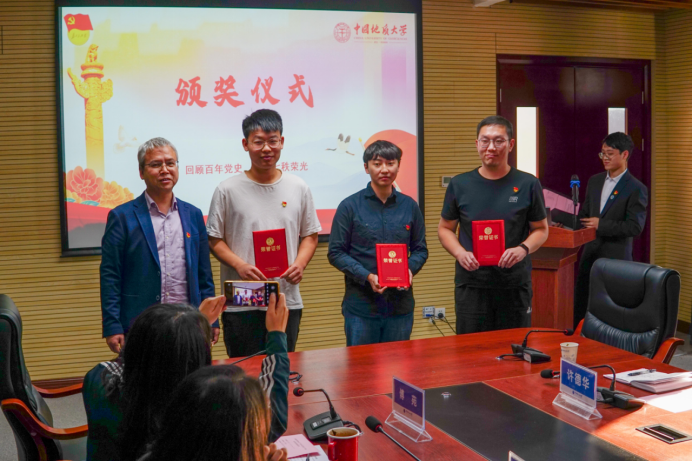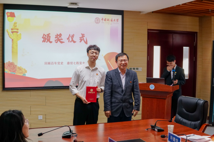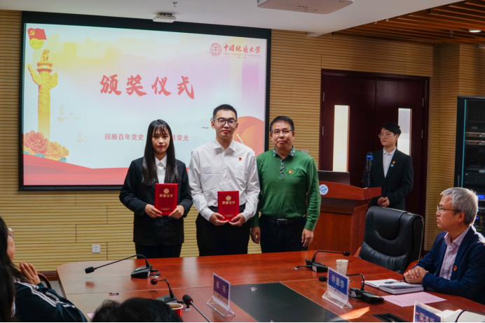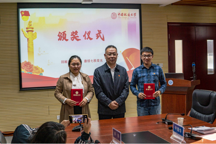 11月2日下午,糖心视频 第九届“支部书记讲党史”学生党支部书记组决赛及颁奖仪式在323会议室隆重举行。校党委副书记、纪委书记唐忠阳,校党委组织部正处级专职组职员梁本哲,高等研究院党委书记赵来时,地理与信息工程学院党委书记许德华,校党委组织部副部长何建新,环境学院党委副书记王海锋,未来城校区办公室副主任、党支部书记高莹莹,材料与化学学院党委委员、材料系第二党支部书记马睿应邀出席,糖心视频 党委书记李国昌,糖心视频 党委副书记、纪委书记傅苑参加活动,教工党支部代表现场观摩。学生党建办公室副主任孔翔担任活动主持。
