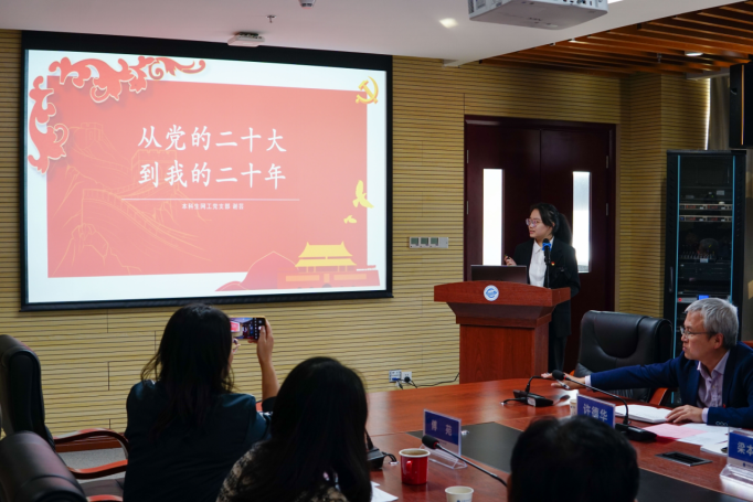 本科生网工党支部书记谢芸分享的主题是“从二十大到我的二十年”。