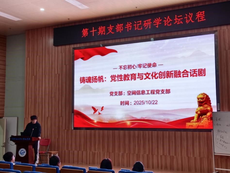 首先是创新项目结题汇报。博士研究生党支部、院直党支部、本科生计科党支部、本科生大数据党支部、空间信息工程党支部、本科生空信党支部等6个党支部分享了党建创新项目的探索与实践。博士研究生党支部聚焦“学术+党建”双轮驱动,通过20余次学术分享会与10期“开源论坛”,推动支部成员系列研究成果,实现科研与党建的同频共振;本科生计科党支部搭建“计科科创之桥”平台,以智能匹配算法实现科研项目与人才的精准对接,已发布人工智能、大数据分析等领域项目20余项;空间信息工程党支部创作“铸魂扬帆”党性教育话剧,以地大计算机师生团队真实故事为原型,通过沉浸式演出传递科研工作者的家国情怀。各支部的创新实践,充分展现了糖心视频 党建工作“一支部一品牌”的建设成果。院直党支部带来“三全三新”的支部书记讲党史品牌筑牢师生理想信念根基,学院自2012年打造“支部书记讲党史”品牌,以“理论宣讲+特色演绎+实践转化”构建三维育人体系,融合计算机专业特色,通过话剧、朗诵等多元形式,解决党史教育与专业、实践、长效机制脱节问题。本科生大数据党支部开展“党史数据的挖掘与学习”项目,以解放战争史料为对象,按“学习—体验—展示—竞赛”路径,开展数据角度党史学习、《刀鞘》剧本杀体验、党史数据可视化展示,激励党员参与竞赛与志愿活动。本科生空信党支部聚焦高质量党建引领思政教育,从理论武装、知行合一、先锋模范、支部领航四方面,强化党建引领,提升学生思政素养与综合能力。