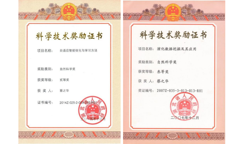 蔡老师是二级教授,博士生导师,中共党员,湖北省计算机学会副理事长,湖北省高等教育学会计算机教育专委会副主任,中国计算机学会高级会员。主要从事演化计算、机器学习及其在高光谱遥感图像处理中的应用研究。先后主持了“863”科技攻关项目、国家自然科学基金项目、教育部博士点基金和湖北省自然科学基金创新群体项目,主持的项目获省自然科学二等奖2次、三等奖1次,省教学成果二、三等奖各1次,参与的项目获省自然科学二等奖1次,出版专著4部、译著1部。在包括TEC、TGRS、TCYB、TKDE、TMM等IEEE汇刊在内的权威期刊上发表论文180多篇,被SCI检索70多篇,EI检索80多篇,其中ESI高被引论文7篇。