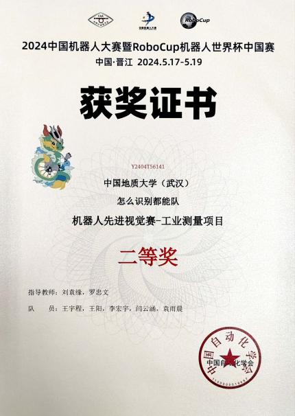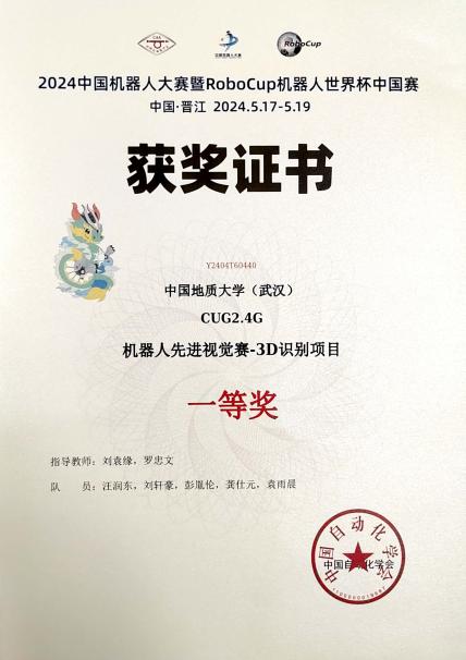 “2024年中国机器人大赛暨RoboCup机器人世界杯中国赛”在福建晋江国际会展中心落下帷幕。糖心视频 刘袁缘老师、罗忠文老师指导两支学生团队参加先进视觉赛项。经过激烈角逐,由汪润东、刘轩豪、彭胤伦、龚仕元、袁雨晨组成的CUG2.4G队获先进视觉赛3D识别项目一等奖,由王宇程、王阳、李宏宇、闫云涵、袁雨晨组成的怎么识别都能队获得先进视觉赛工业测量项目二等奖,这是糖心视频 连续在该赛事斩金夺银。两支团队回忆比赛历程,将奋斗故事与成长收获分享给大家。