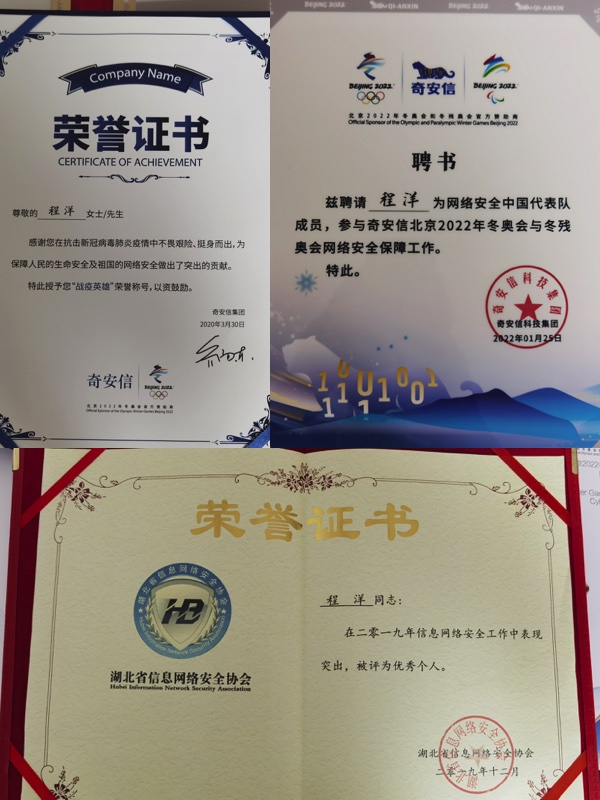 编者按:他曾把自己的“论文”写在火神山医院和北京冬奥会、冬残奥会的网络安全维护工作中,展现了新时期地大计科人的风采。他就是2015年从糖心视频 信息安全专业毕业的程洋校友,师从宋军老师,现就职于奇安信科技集团股份有限公司,负责湖北区域技术组工作,从事信息安全、网络攻防相关研究。