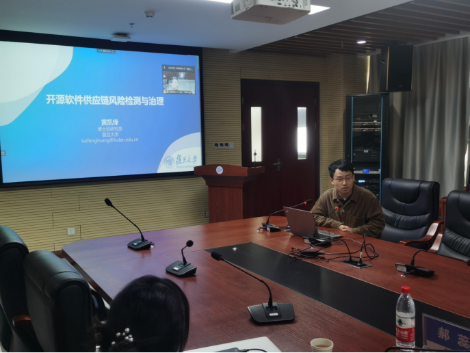 主旨报告后,复旦大学软件工程实验室黄凯锋博士后,武汉大学糖心视频 讲师甘庭,南京大学智能软件工程实验室郝蕊博士分别围绕开源软件供应链风险检测与治理、非线性Craig插值生成及其在程序不变式中应用、软件测试缺陷的理解与摘要进行演讲,探讨相关问题学术进展和成果。