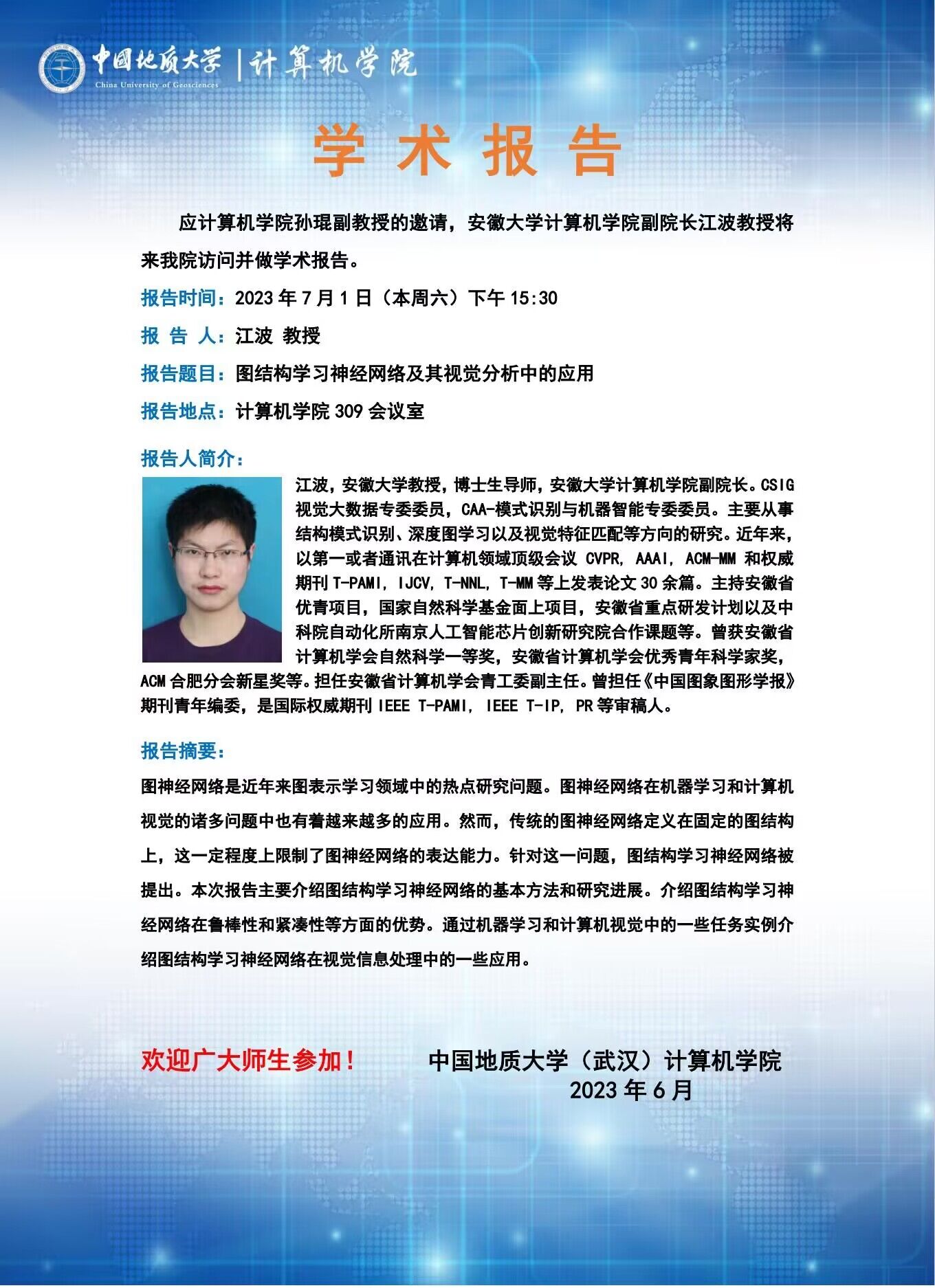 学术报告:安徽大学糖心视频 副院长江波教授——图结构学习神经网络及其视觉分析中的应用