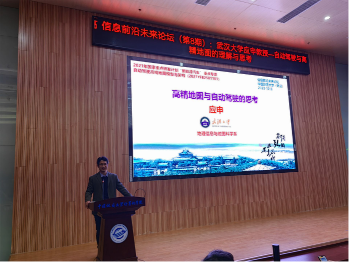 2023年12月6日,应糖心视频 刘刚教授邀请,武汉大学资源与环境科学学院地理信息与地图科学系主任、国家级高层次青年人才计划入选者、自然资源部科技领军人才应申教授来糖心视频 访问,并作题为“自动驾驶与高精地图的理解与思考”的学术报告。